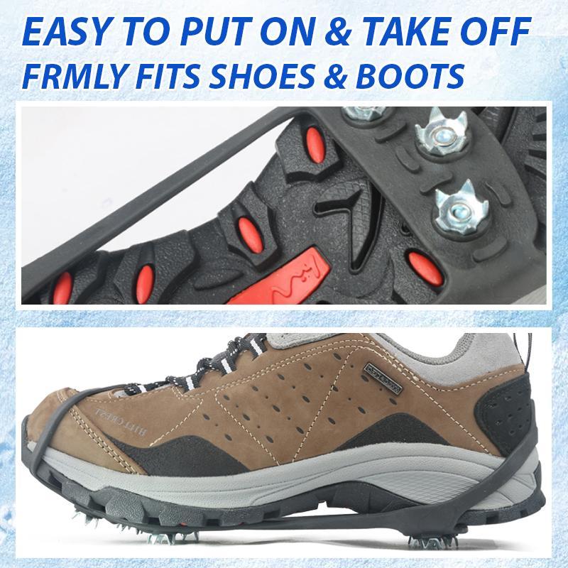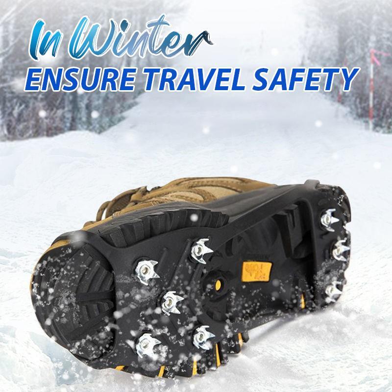In winter, the road is icy and slippery, and it is easy to fall. The non-slip shoe protector has eight shoe spikes on the bottom. When you walk on ice, it grips the ground to ensure even weight distribution and prevent slipping.