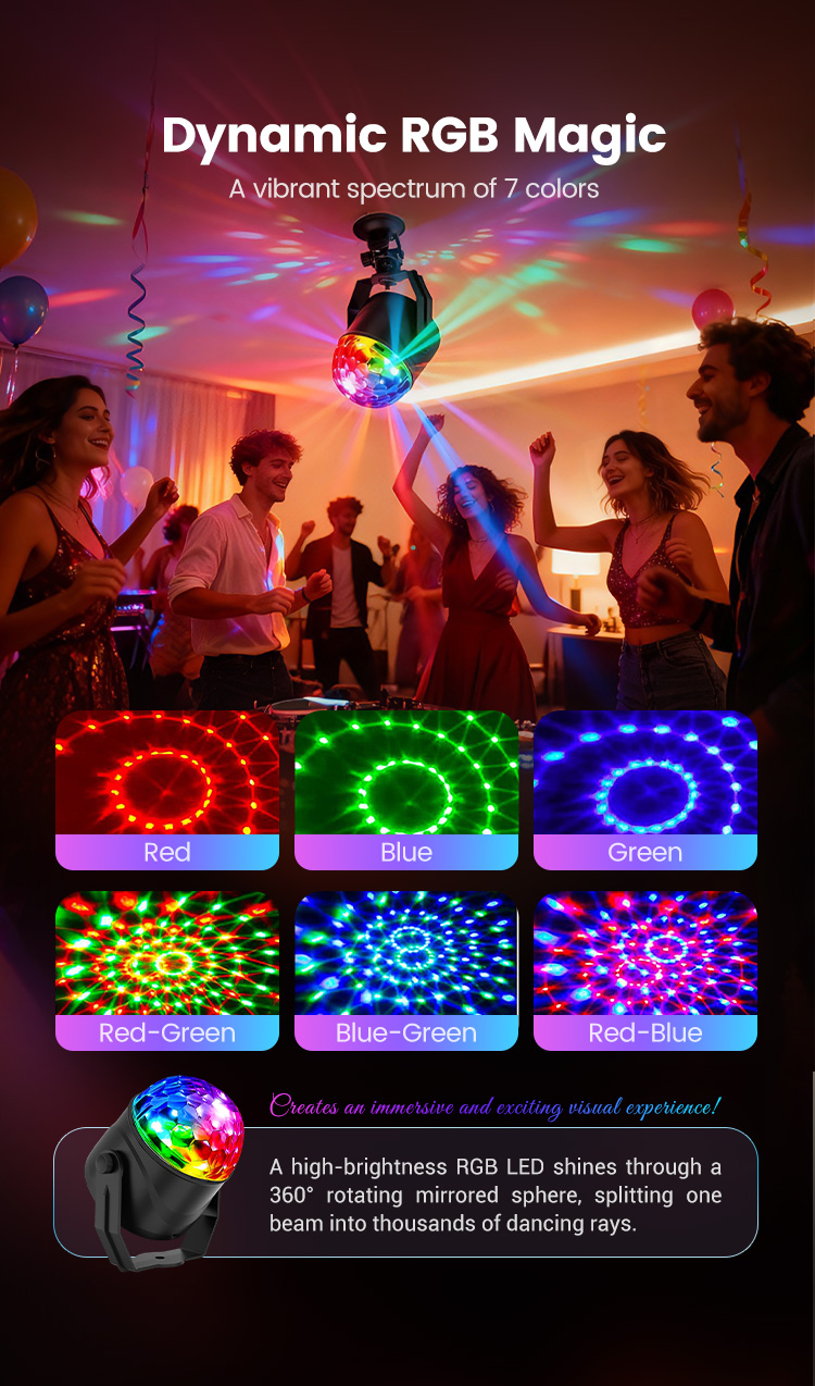 🎄 FESTIVE FEAST DEAL! 🔥Colorful Rotating Magic Disco Ball Light