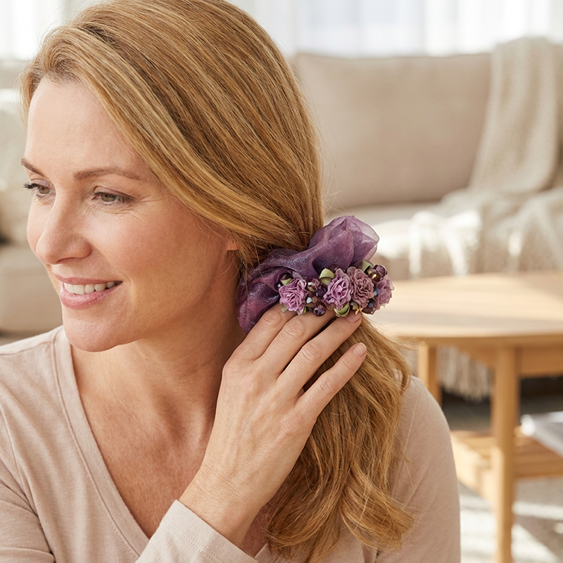 Package Includes: 1 x Elegant Floral Organza Hair Scrunchie