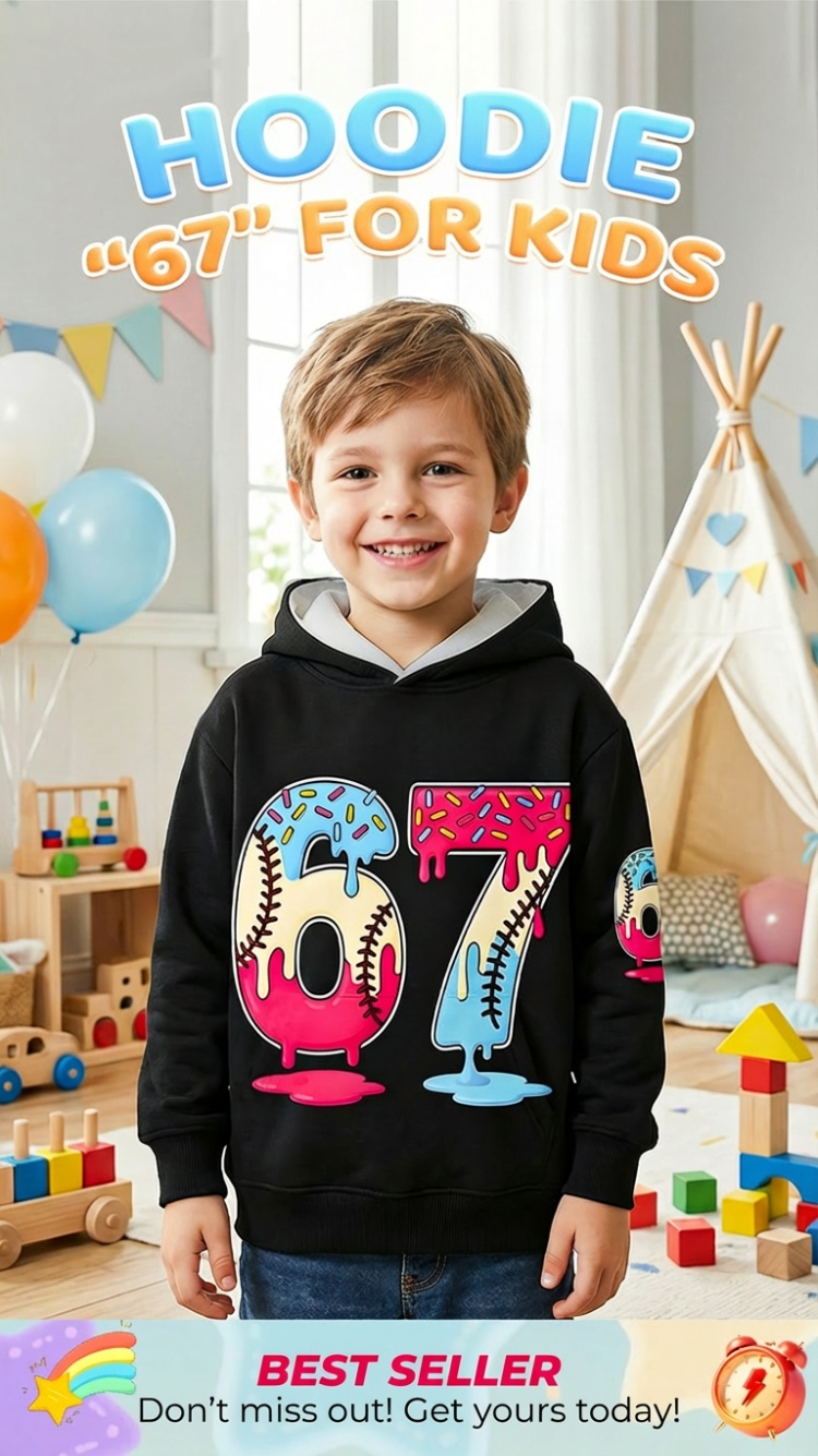 Increase quantity for ✨🔥Kids' Funny 67 Meme Hooded Sweatshirt