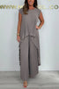 👗Laney Pleated Short Sleeve Irregular Midi Top and Elastic Waist Wide Leg Pants Set✨