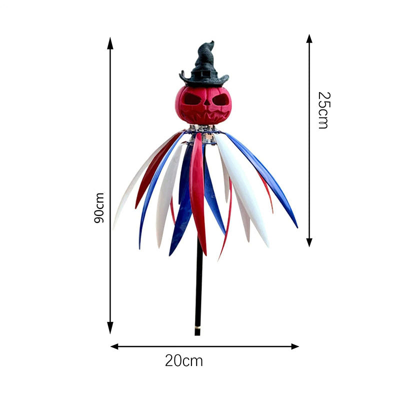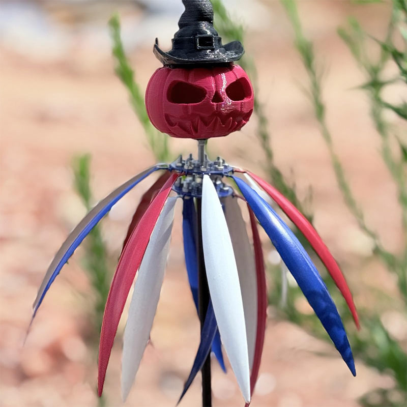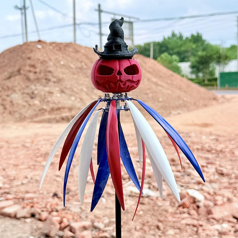 UNIQUE DESIGN: The wind spinner features a striking red pumpkin at the top with a skull pattern, topped with a black wizard's hat, offering a festive Halloween-inspired aesthetic for your outdoor space.