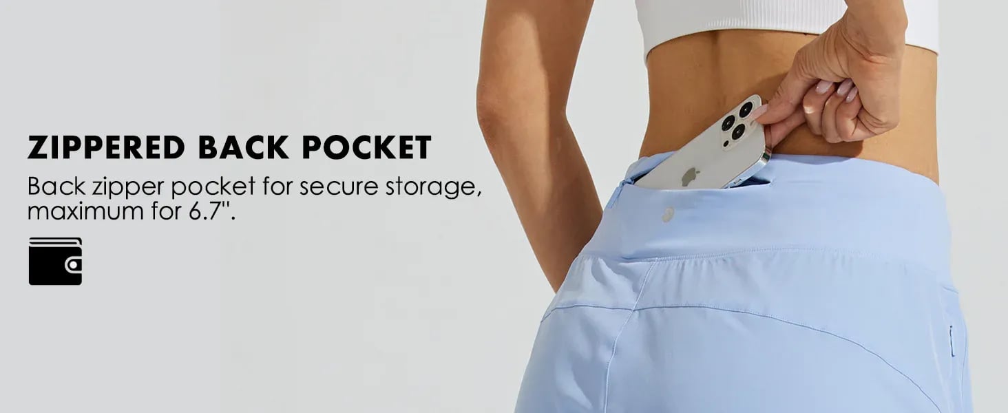 UTILITY STORAGE SYSTEM. Designed with two front side pockets that fit most smartphone sizes and a secure back zipper pocket for small items like keys or cards, these shorts offer practical storage without adding bulk, The streamlined layout keeps your gear close while maintaining a clean,sporty look.