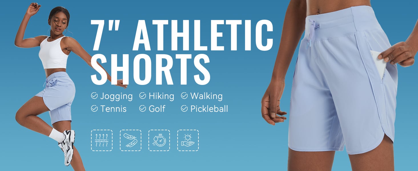 🏃♀️ Women's 7" Athletic Shorts for Running Workout Hiking with Zipper Pockets